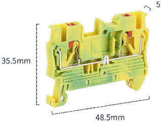 Клеморед 2.5кв. Жълт/Зелен, пружинен L48.5/H35.5/W5.2mm |
